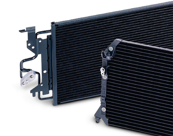 OSNOVNI ZAHTJEVI:- raspršivanje topline u okolni zrak najvažnija je zadaća kondenzatora. - oblikovan je za što bržu predaju topline - smješten je uvijek ispred hladnjaka motora - lako propušta obilnu zračnu struju - danas su najčešći pločasti aluminijski kondenzatori s mikrokanalima i limenim krilima - visoki učinak, kompaktna konstrukcija - ohlađivanje medija uz jednaki tlak ulaza i izlaza - koeficijent prolaza topline k = 92 W/m2K - ukupna površina cijevi i krila na osobnom automobilu - do 7 m2 |